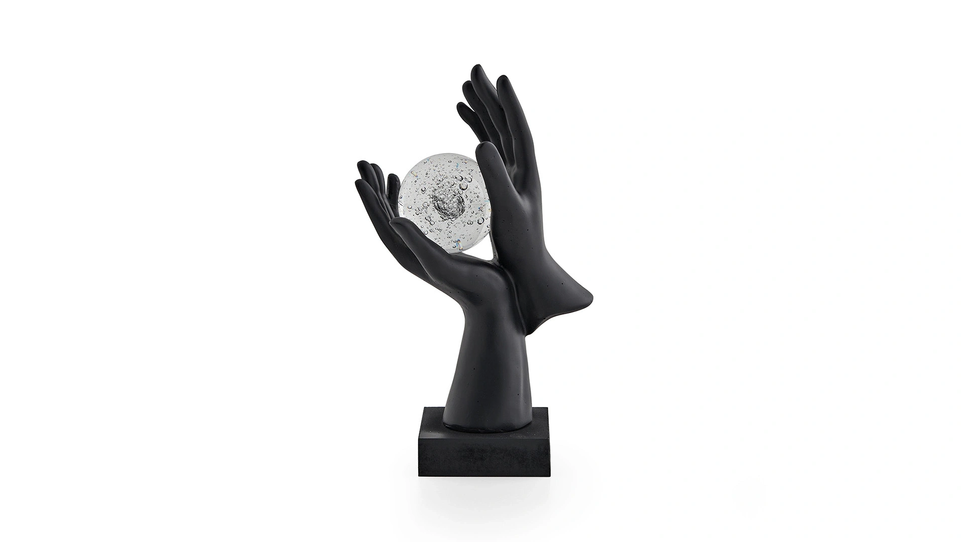 Doğtaş Home el küre biblo, modern bir dekorasyon oluşturmak isteyen kişilerin beğenisini kazanıyor. Siyah el figürlerinin ortasında yer alan şeffaf bir küreden oluşan objeyi dilediğiniz mekanda kullanabilirsiniz. El Polyester Malzemeden Üretilmiştir. Küre Cam Malzemedir.