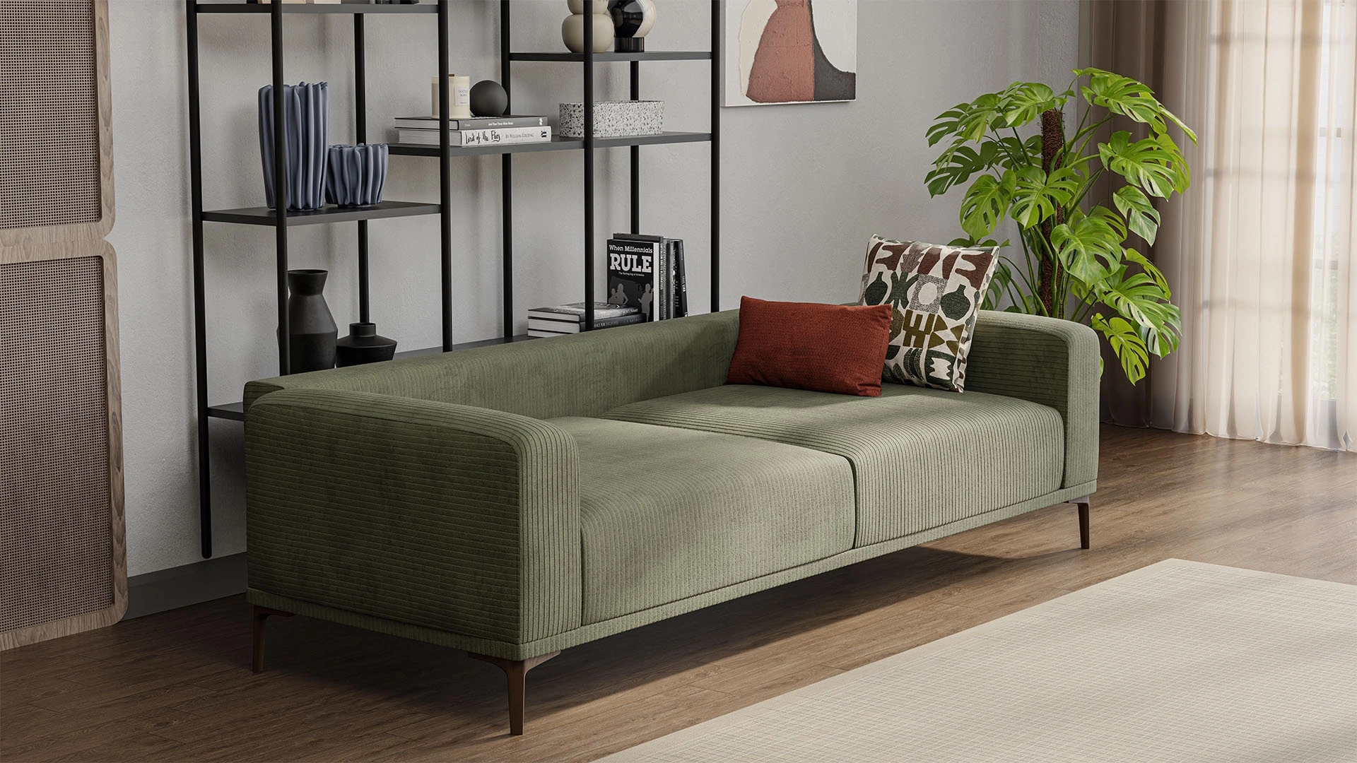 Yeşil Fitilli Örme Kadife