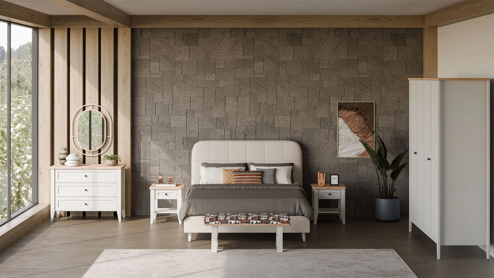 Yatak odanızda huzur ve sıcaklık arıyorsanız Calmera Yatak Odası Takımı tam size göre! Koleksiyonun tüm zarafetini bir araya getiren bu yatak odası takımı, estetik detaylarıyla ve fonksiyonel çözümleriyle öne çıkıyor. 4 kapaklı dolap, 160 cm yatak başlığı, 2 komodin ve geniş şifonyerden oluşan bu seti dilediğiniz gibi şekillendirebilirsiniz. Kendi ihtiyaçlarınıza ve alanınıza göre dilediğiniz gibi özelleştirebileceğiniz Calmera Yatak Odası Takımı ile doğallığı ve sadeliği yatak odanıza taşıyabilirsiniz.