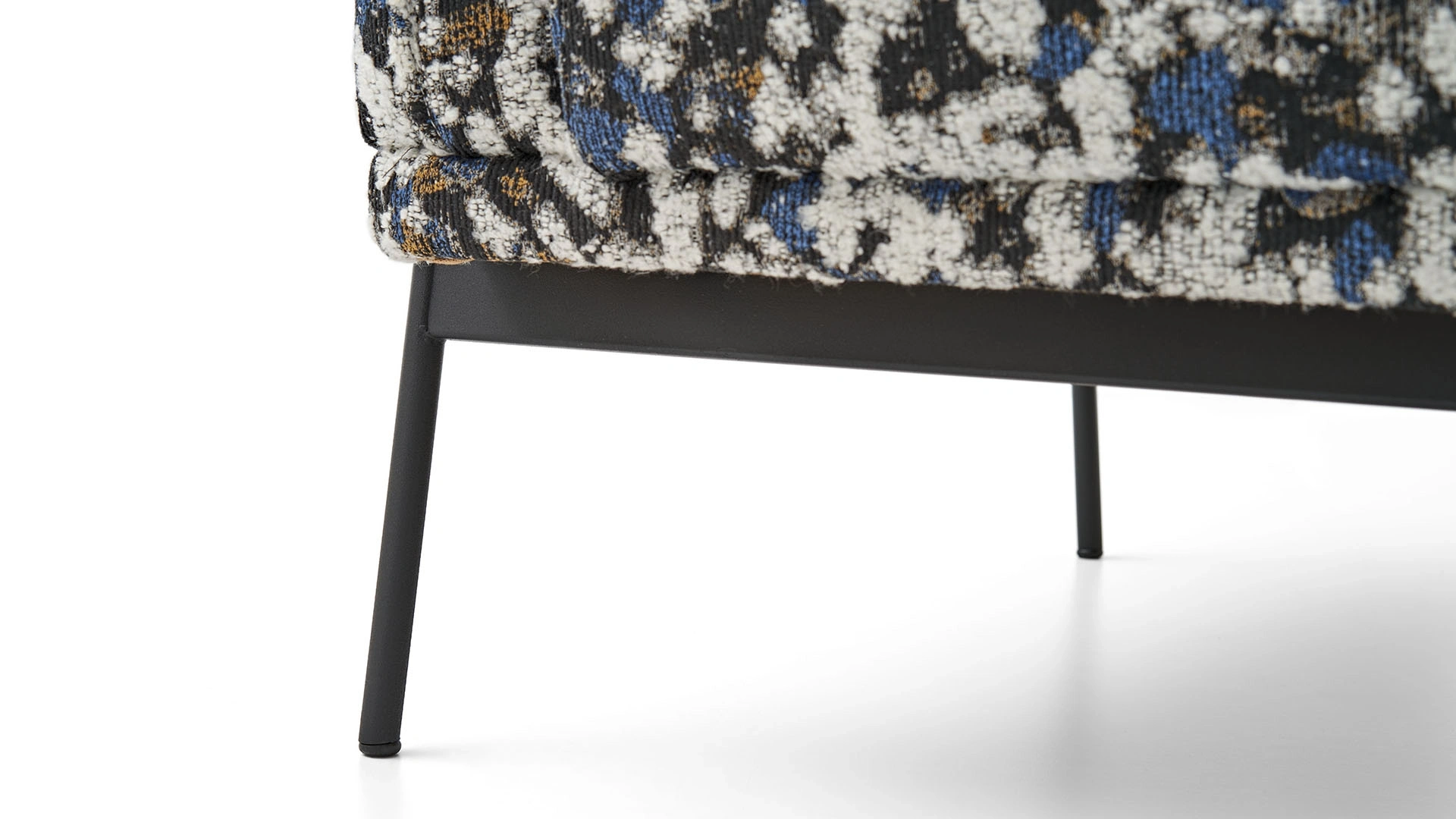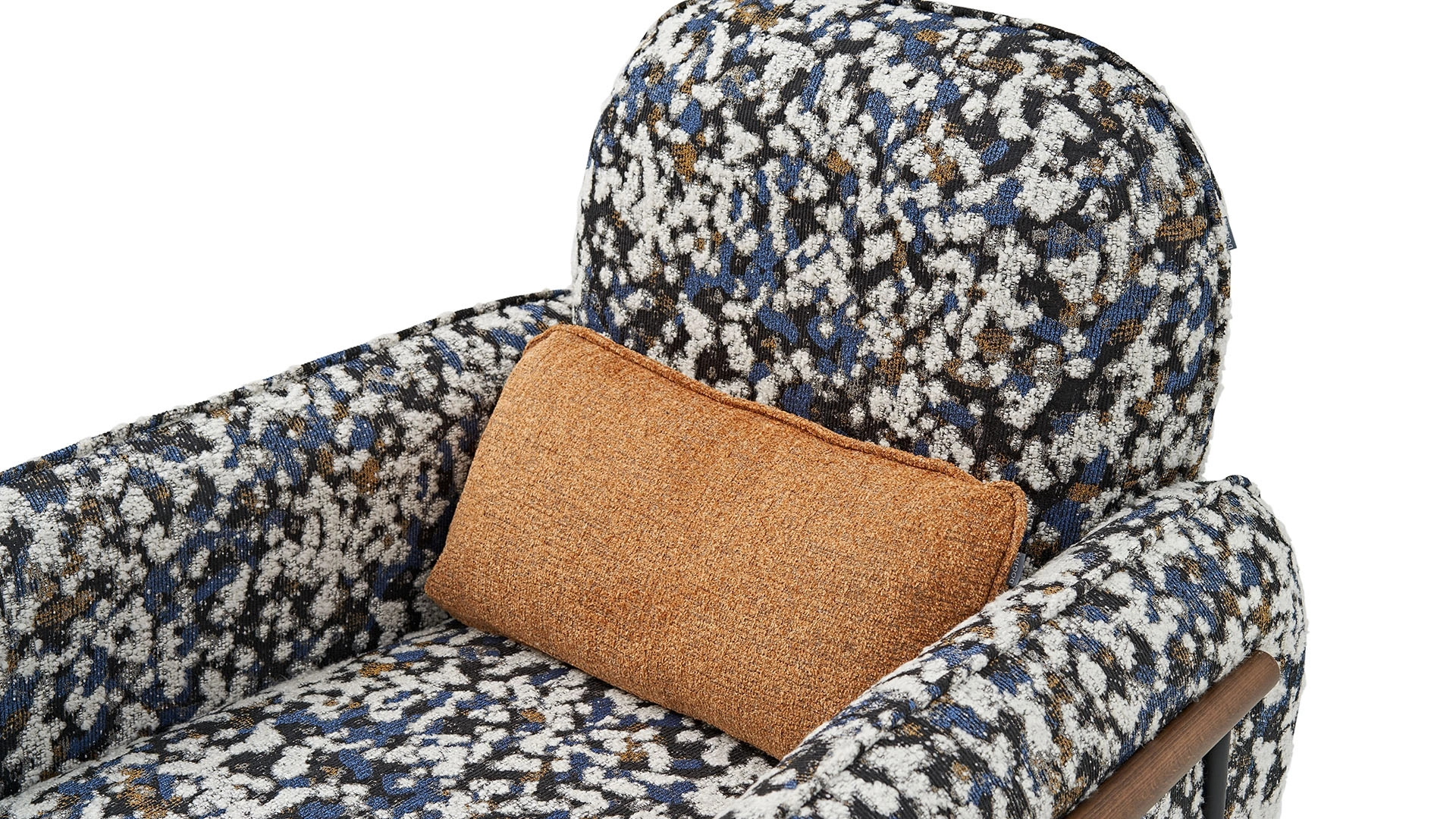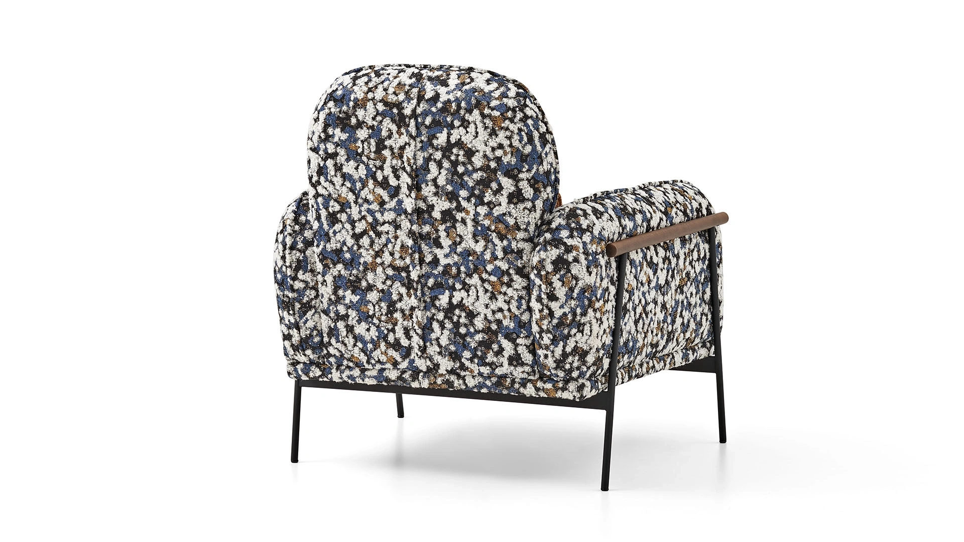 The KIERA Exclusive Armchair comes with a design that will completely change the decoration of your living room. This lively and dynamic version of the KIERA series combines the harmony of black, white, blue, and mustard tones. The KIERA Exclusive Armchair, which looks like a work of art, also offers ergonomic use with its metal legs, wide seating area, and slightly inclined back structure. You can turn the KIERA Exclusive Armchair into the focal point of your living room.