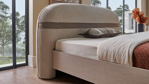 The LEA Headboard, which will add an elegant touch to your bedroom, can harmonize with any bed frame thanks to its 160 cm width. Modern lines and soft texture are among the most important features of the LEA Headboard. Its high-quality fabric provides durability and an aesthetic appearance, while the stylish quilting details and thin ribbon embellishments add elegance to the design. With its 160 cm width, this headboard is ideal for double beds of various decoration styles, allowing you to easily enjoy a minimalist look.