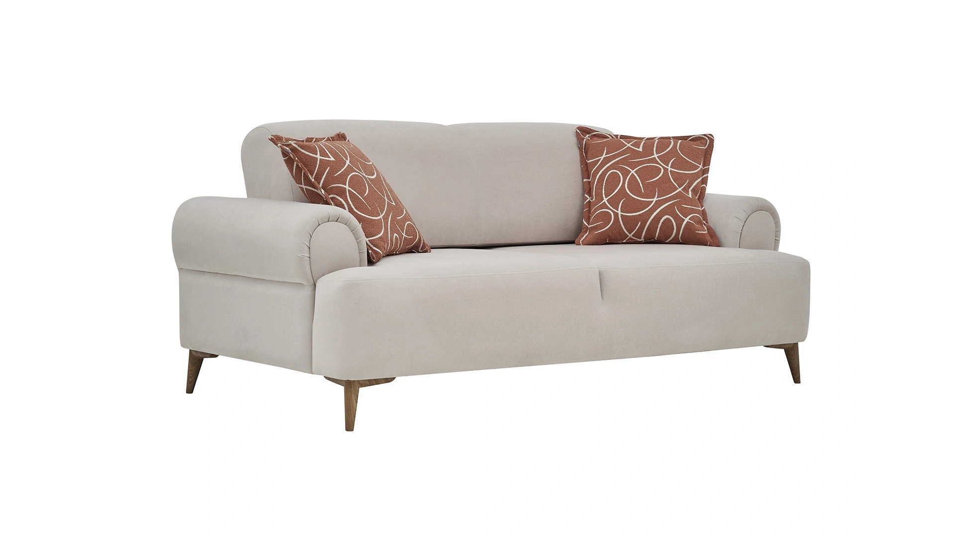 The Margo two-seater sofa gains a classic elegance with its modern and soft design as well as its P-arm structure. With the Barcelona mechanism, the backrest can tilt back allowing for a comfortable seating experience or the possibility to transform into a single bed. With its dark oak legs, the product also offers convenience during the cleaning process. You can buy this product right now.