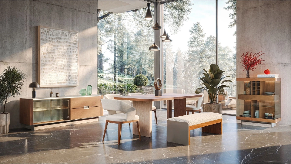 Your dream dining room comes to life with the Moderna Dining Room Set. The set includes options for extendable and foldable dining tables, chair models, console, and display cabinet among many other pieces. This way, depending on the size of your dining room, you can create your set with the pieces you desire. Designed with the harmony of walnut tones and marble, the Moderna Dining Room Set is the top choice for those who want to create a modern living space!