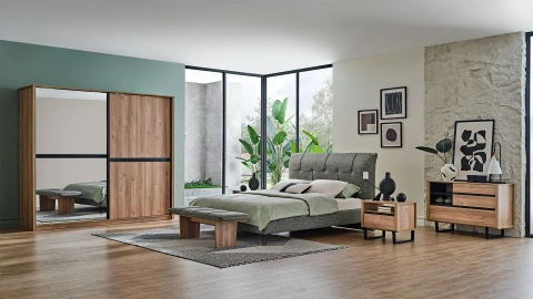 Complete the Moderna aesthetic in your bedroom with this footstool! The Moderna Footstool stands out with its cream-colored chenille fabric. This product, with its natural texture, is complemented by walnut-colored wooden legs. Thus, the color balance of the product is completed. Providing both decorative and functional solutions with its natural warmth, the Moderna Footstool successfully carries the elegance of the collection to the environment it is in.
