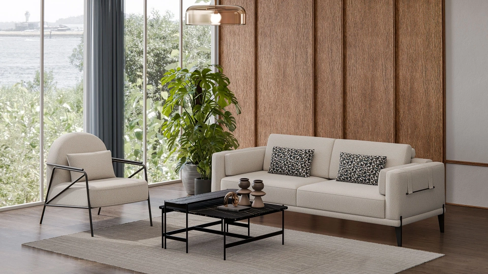 The unique harmony of white and black comes together with the Momenti Sofa Set! This set combines black legs and arm details with light-colored fabric, creating an eye-catching contrast in your living room. With its modern lines, Momenti attracts attention and scores high marks for its customizability. You can complete your decoration by choosing among the luxurious and double-seater sofas, single-seater sofas, and armchairs according to the design of your living room.