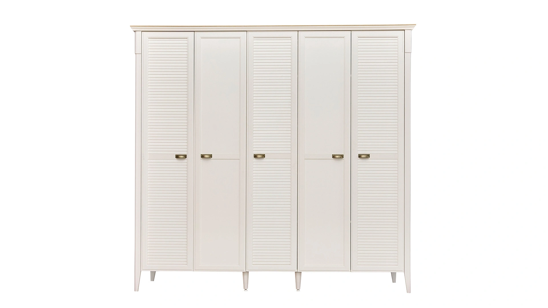 Toscana 5-door cabinet is waiting to take its place in your bedroom with its nostalgic details reflecting the country style and practical interior design. You can buy the product, which offers a stylish look with its shutter-detailed doors, eye-catching moonstone color, and distressed gold handles, right now.