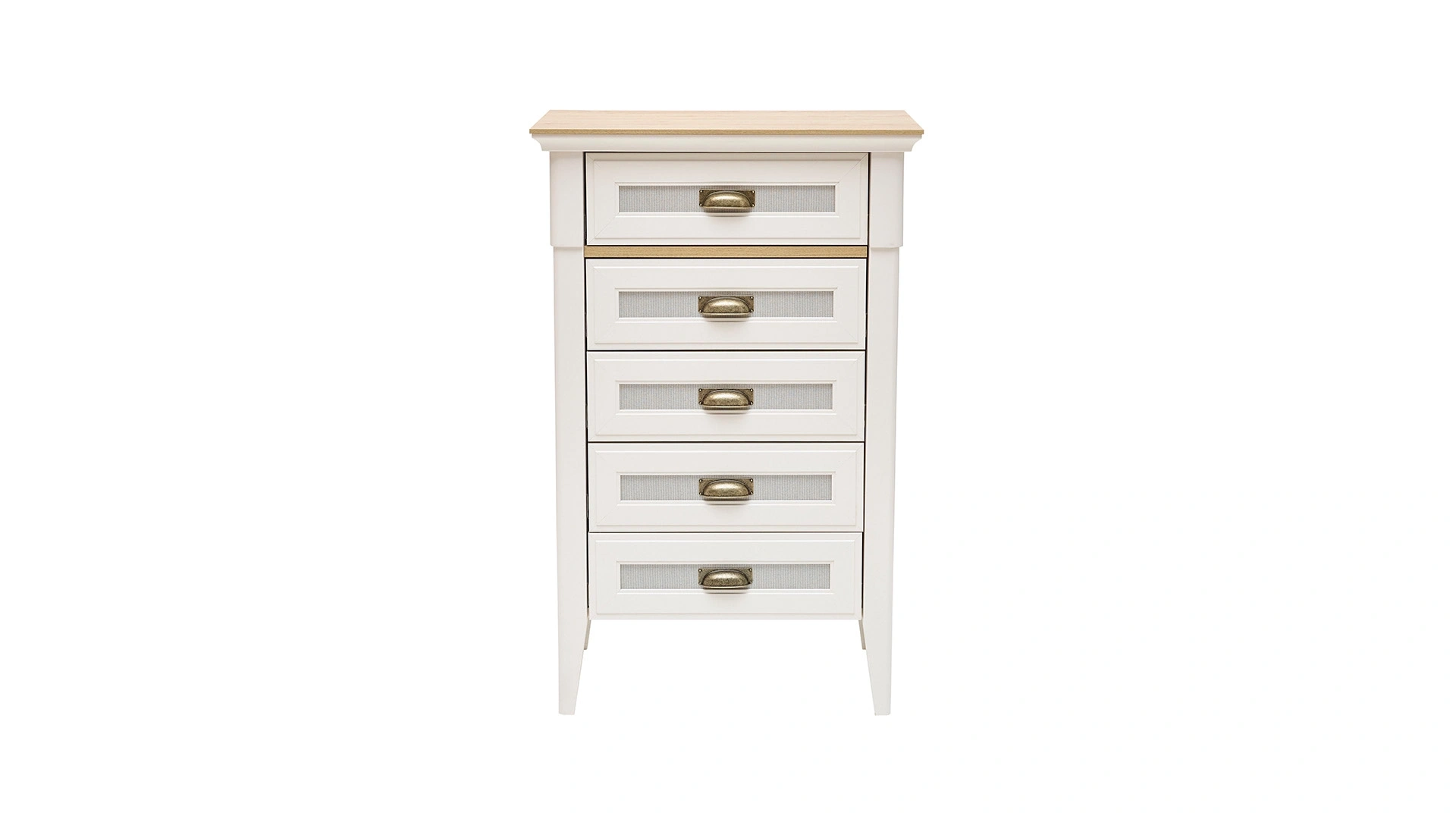 The Toscana 5-drawer high chest of drawers, which is part of the Toscana bedroom furniture, takes its place in your bedroom with its stylish design. You can buy the product right now, which helps you save space with its narrow and tall design and beautifies your decoration with its Country style reflecting appearance.