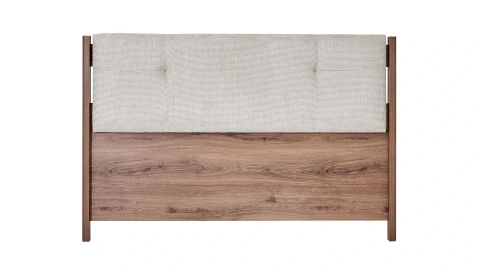 The Vermont Headboard offers aesthetic appeal and comfort to your bedroom. With its natural walnut wood surface, the Vermont Headboard provides a warm touch, while its cream-colored soft upholstery at the top adds a touch of modernity. The button details on the upholstery add movement to the headboard's appearance. The horizontal striped texture on the fabric completes the sporty-chic style. Vermont Headboard is among the best choices for your room with its natural and modern decoration.