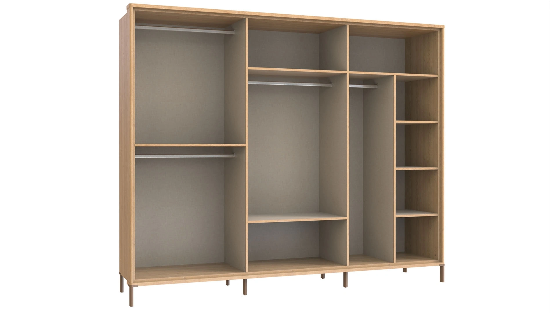 Kalia 6 Kapaklı Dolap, geniş depolama alanı ve zarif tasarımıyla yatak odalarının vazgeçilmez parçası olmaya aday. Açık ahşap tonlarının sıcaklığı, dikey çizgi detaylı kapaklarla birleşiyor. Böylece modern ve yalın görünüm yaşam alanınıza dahil oluyor. Orta bölümde yer alan iki aynalı kapak odanıza ferahlık kazandırıyor. Aynı zamanda günlük kullanım için de bu aynalar büyük kolaylık. Geniş iç düzeninde askılık alanları, raflar ve saklama bölmeleriyle Kalia 6 Kapaklı Dolap, kıyafetlerinizi ve eşyalarınızı düzenli bir şekilde saklamanıza yardımcı oluyor.