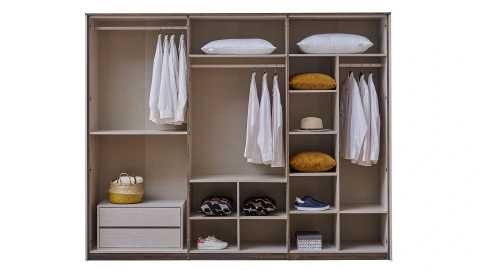 Yaklaşık 271 cm'lik genişliğiyle iki kişinin eşyalarının kolayca sığabileceği NITA 6 Kapaklı Dolap, yatak odaları için en iyi seçimler arasında yer alıyor. Bu dolabın 4 adet aynalı kapağı mevcut. Bu sayede hem odanıza derinlik katabilir hem de hazırlıklarınızı daha kolay yapabilirsiniz. Hemen her kıyafet için ayrı askı ve raflar sayesinde dolap düzenini dilediğiniz gibi oluşturabilirsiniz. Dolabın açık renk kapakları parlak görünüme sahip. Bu da oldukça modern görünüm sağlıyor. Yerden yüksek ayaklar ise alt temizliğini kolaylaştırıyor.