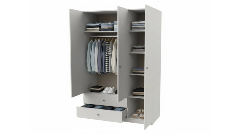3 Kapaklı Çekmeceli Raflı Dolap