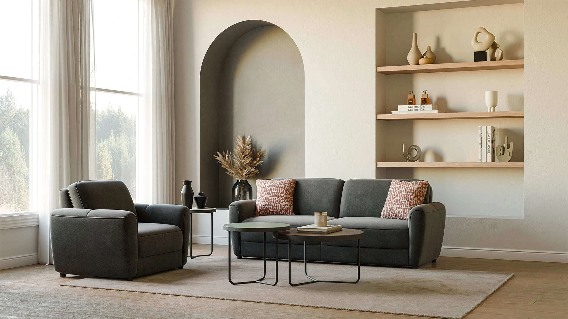 Remy 165 cm ikili yataklı koltuk, konforlu tasarımı ile mekanlarınıza rahatlık katıyor. Yatak olabilme özelliği ile konforunu artıran ve misafirlerinizi ağırlamanıza da olanak tanıyan ikili koltuğu Remy koleksiyonunda yer alan koltuk ve berjer modelleri ile birlikte satın alabilirsiniz.
