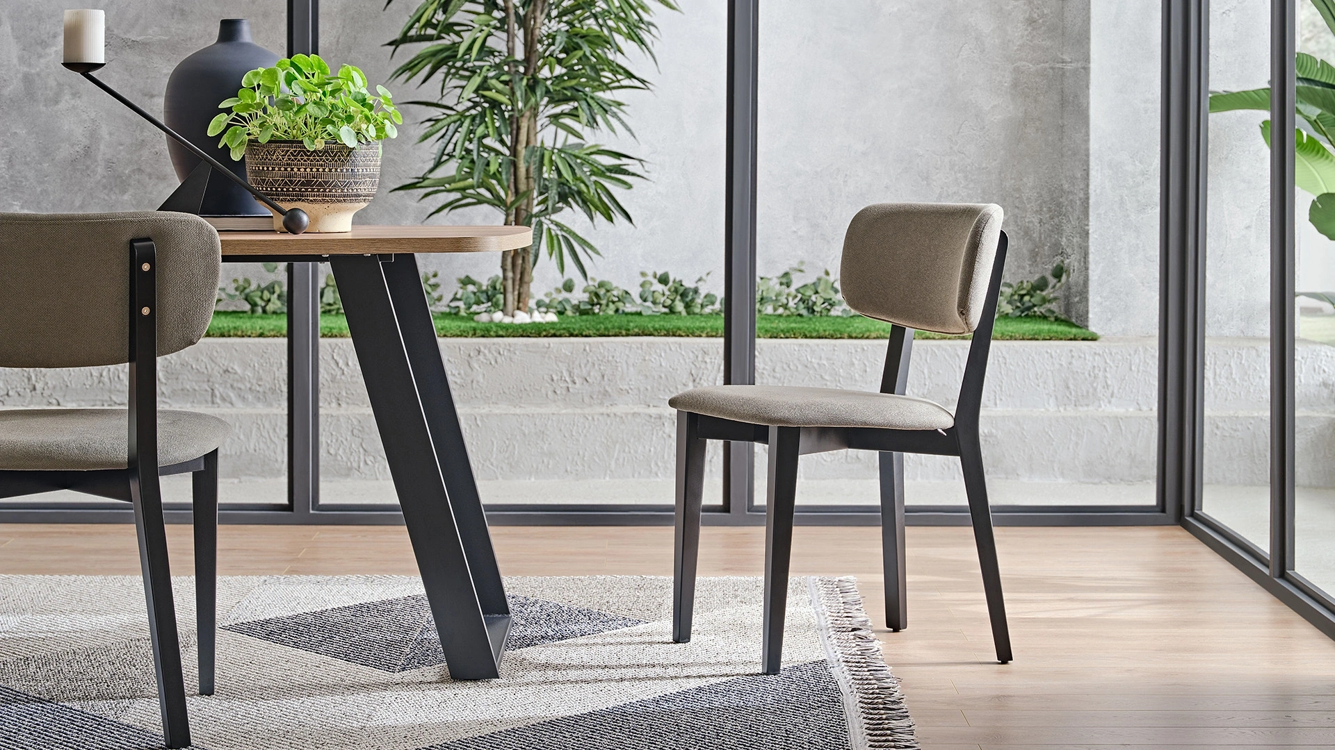 Solid siyah ofis sandalyesi, zamansız ve şık tasarımı ile farklı mekanlara kolayca uyum sağlıyor. İsterseniz yemek odası isterseniz de ofisinizde kullanabileceğiniz sandalyeyi Solid koleksiyonunda yer alan diğer sandalye ve masa modelleri ile kombinleyebilirsiniz.